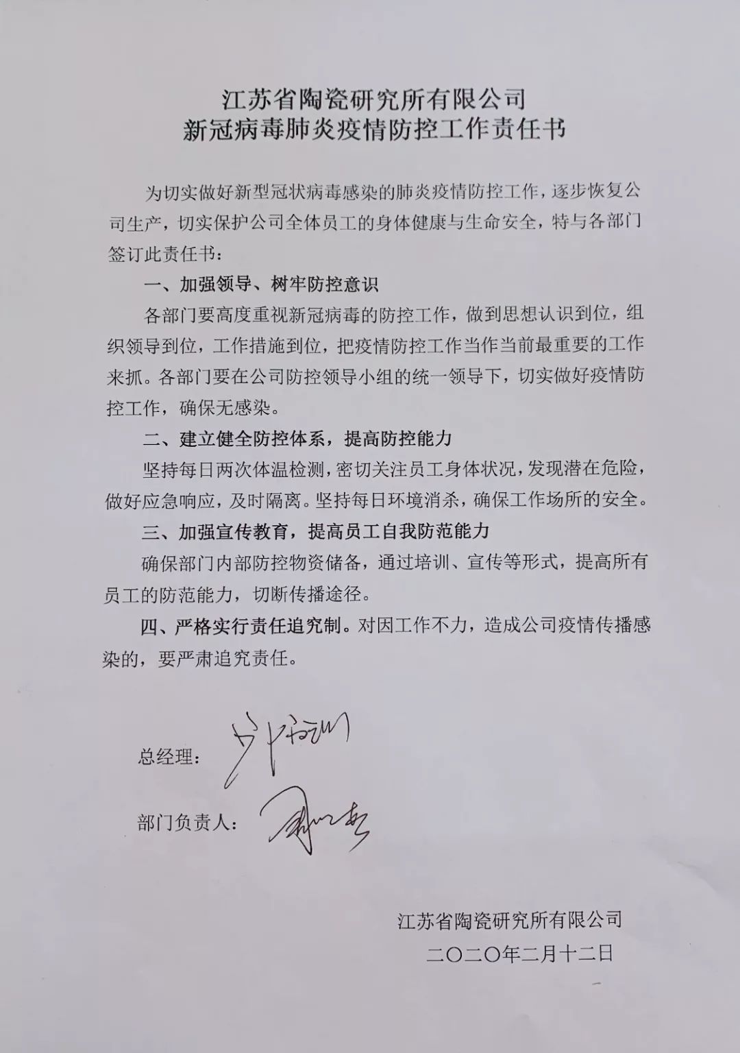 同時(shí),為切實(shí)做好疫情防控工作,加強(qiáng)責(zé)任落實(shí),會(huì)上,各部門主要負(fù)責(zé)人與公司簽訂了新冠肺炎疫情防控工作責(zé)任書。